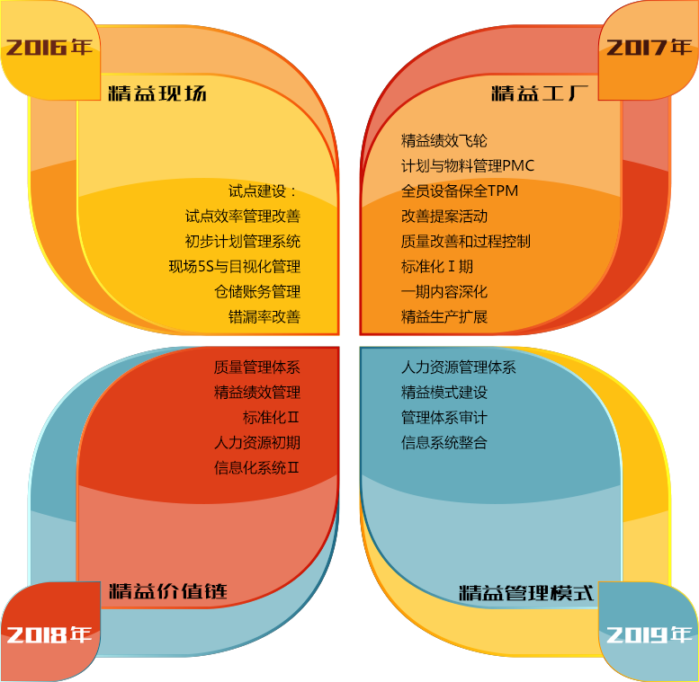 根據(jù)精益變革規(guī)律,項(xiàng)目分精益現(xiàn)場、精益工廠、精益價(jià)值鏈、精益管理模式四個(gè)階段實(shí)施。結(jié)合公司現(xiàn)狀特點(diǎn),本階段屬于精益現(xiàn)場試點(diǎn)流動(dòng)化階段,主要包含裝配車間布局規(guī)劃、電器車間布局規(guī)劃、倉儲(chǔ)物流規(guī)劃、5S目視化方案規(guī)劃等內(nèi)容。通過本期試點(diǎn)形成流動(dòng)化標(biāo)桿,以便復(fù)制與推廣。