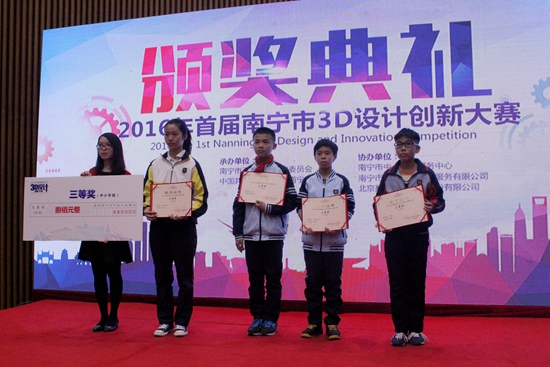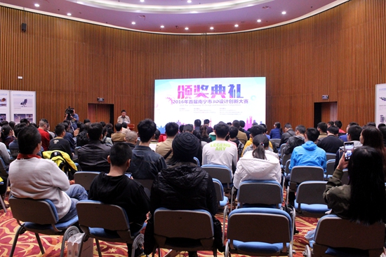 2016年12月22日,首屆南寧市3D設計創(chuàng)新大賽頒獎典禮及優(yōu)秀作品展在南寧市國際會展中心隆重舉行,大賽圓滿落幕。南寧市工信委林康副主任、中國共產(chǎn)主義青年團南寧市委員會劉文忠副書記、南寧市商務局許文副局長、南寧市科技局霍炳至副調研員、南寧市中小企業(yè)服務中心劉潔瑩副主任、3D設計大賽組委會代表以及獲獎嘉賓共同出席頒獎典禮,市工信委林康副主任致頒獎典禮啟幕詞。
